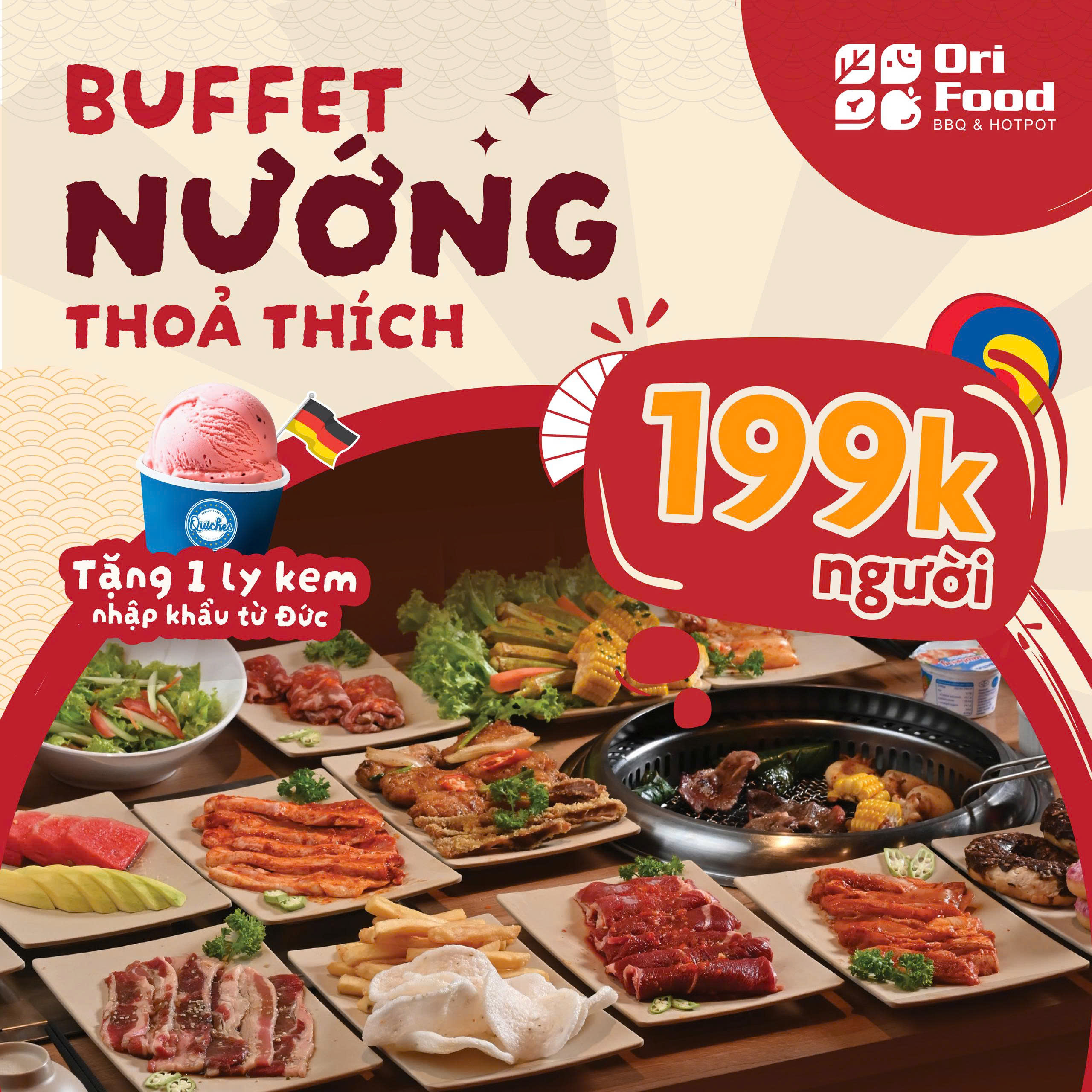 – Tặng 1 viên kem vị bất kỳ khi dùng Buffet 199.000 (1 viên/1 buffet)
